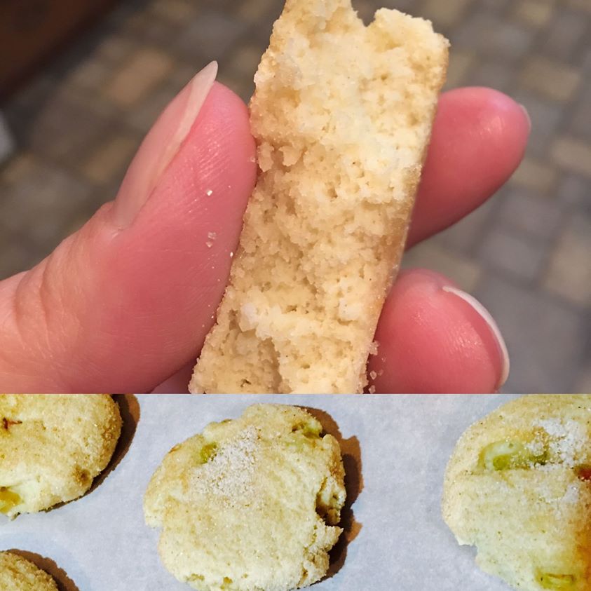 So - I took a look at a recipe a friend sent me for rhubarb cookies and I tweaked it a bit to ensure I would end up with lots of fluffy melt in your mouth delicious cookies. So here goes: